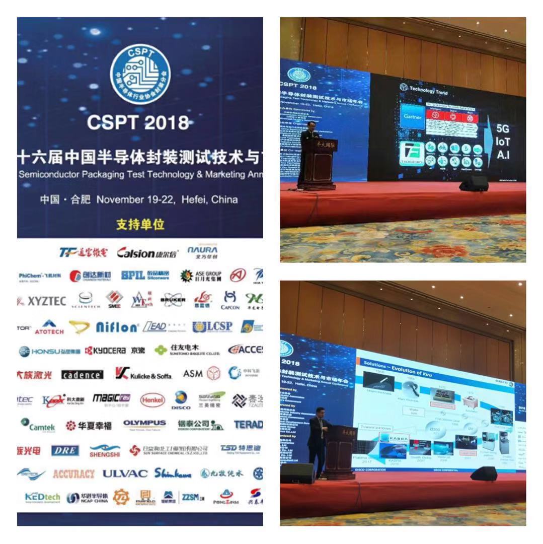 作为国内唯一涵盖整个半导体封测行业的最具影响力的专业研讨会——第十六届中国半导体封装测试技术与市场年会,于2018年11月19日-22日在合肥召开。我公司作为江苏省半导体行业协会的理事单位,应邀参加了此次年会。