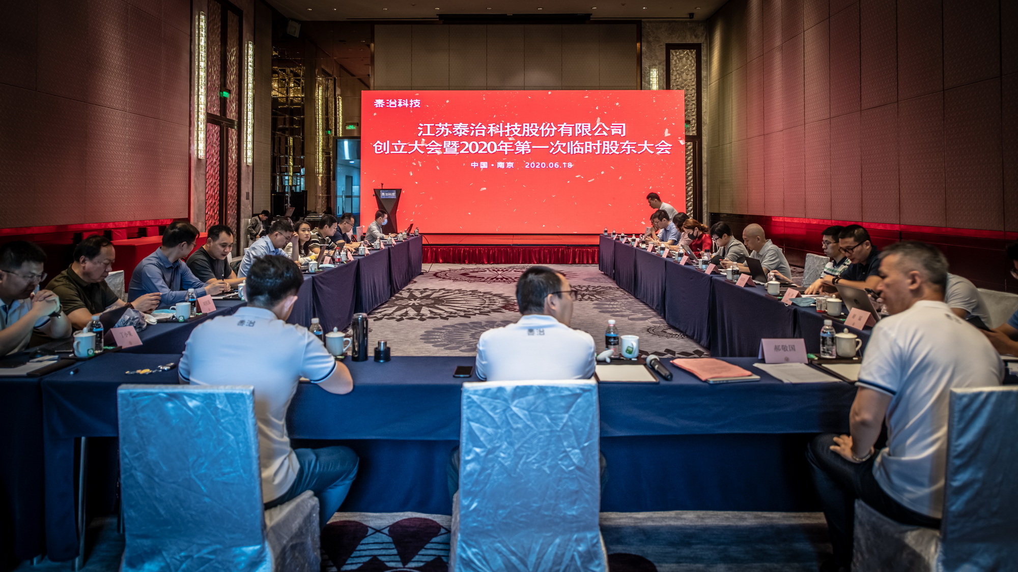 2020年6月18日,江苏泰治科技股份有限公司创立大会暨第一次临时股东大会在南京金奥费尔蒙酒店隆重举行。